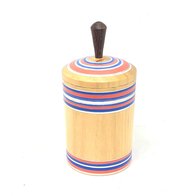Piccola BOX in ciliegio, con pinnacolo in palissandro, decorata con colori di un bersaglio.
