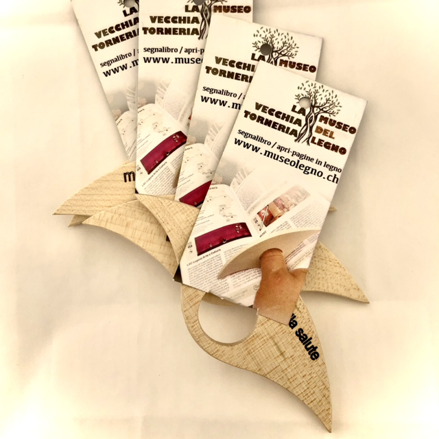 Aletta da infilare nel pollice per tenere in mano comodamente un libro aperto! In acero, con aforisma a sorpresa sul mondo della lettura!