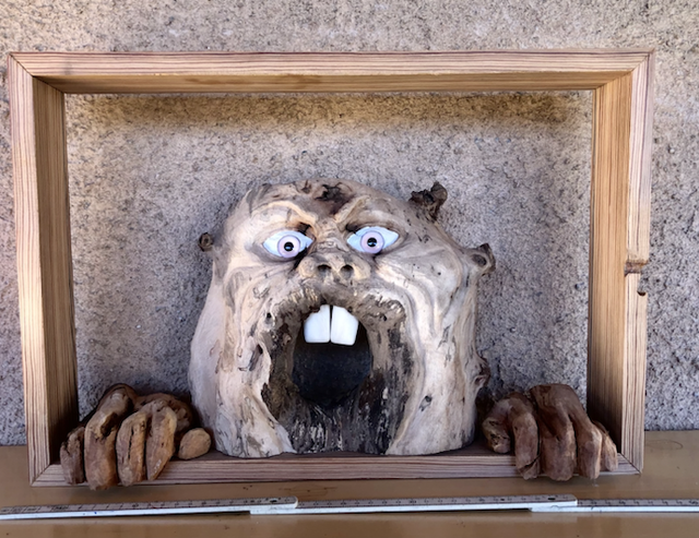 Opera scultore su platano, con cornice appendibile.