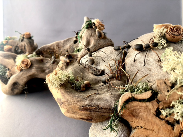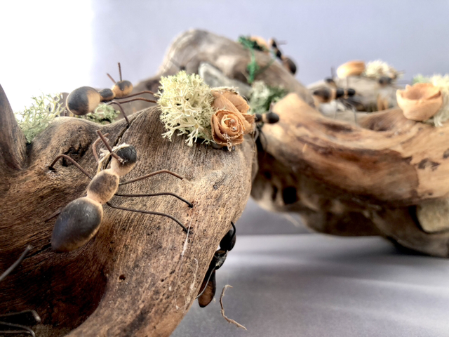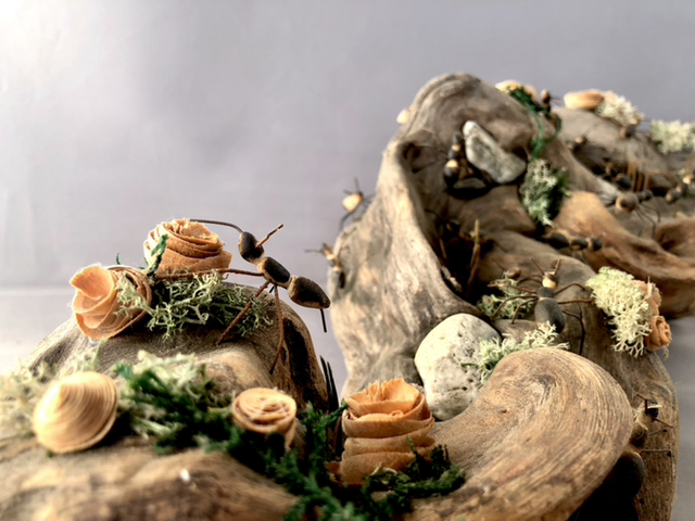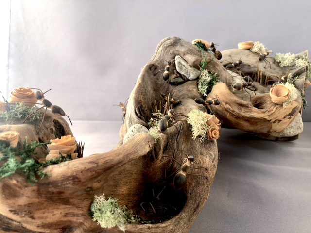 realizzata su una radice di fiume con formiche tornire in disassato